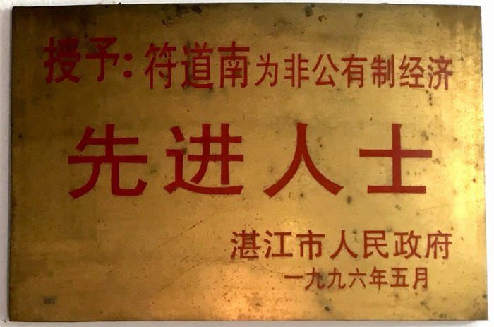 2011年度湛江市優(yōu)秀企業(yè)家榮譽牌匾2012年3月
